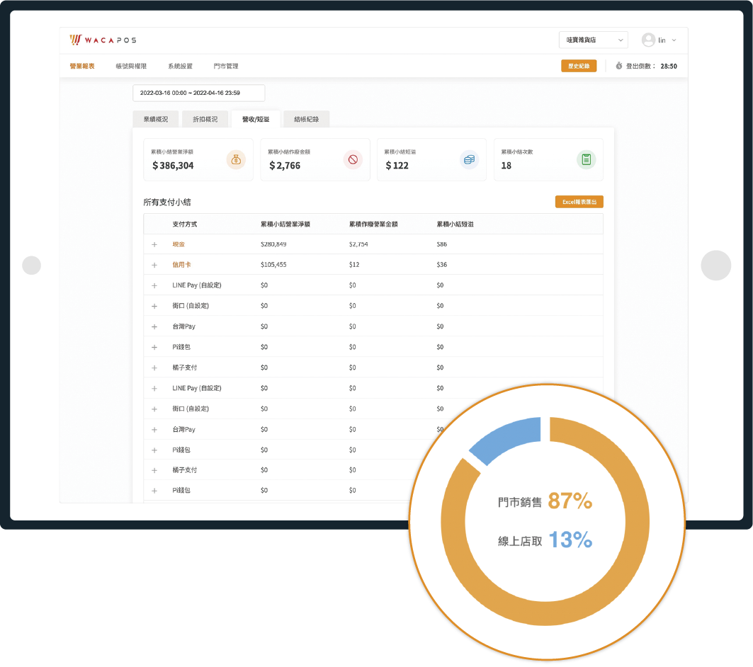 ipad 就是POS機,專為 WACA 商家設計的POS系統,官網上已設定的商品、售價、活動,直接共用到POS,省時又省力。