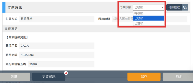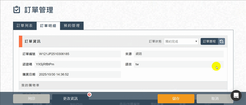 當整筆訂單/預約單都確認取消、且款項的部份也確認已處理完成後,可至訂單明細將訂單付款狀態轉至【已退款】,退款完成後,訂單狀態會連動至【取消】代表已取消此筆訂單交易。