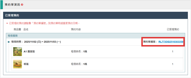 2. 若您同時預約營地與租借用品,建議於報到時一併領取並核對物品數量。