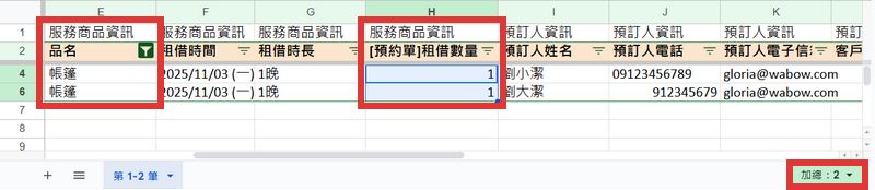解壓縮檔案後,可使用表單的篩選功能,計算出當天所需的租借數量資訊。