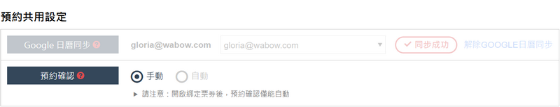 【Google 日曆同步】可使用 Google 帳號設定日曆同步,完成綁定後成立的預約訂單,預約確認後, Google 日曆內會顯示已確認預約的資訊。