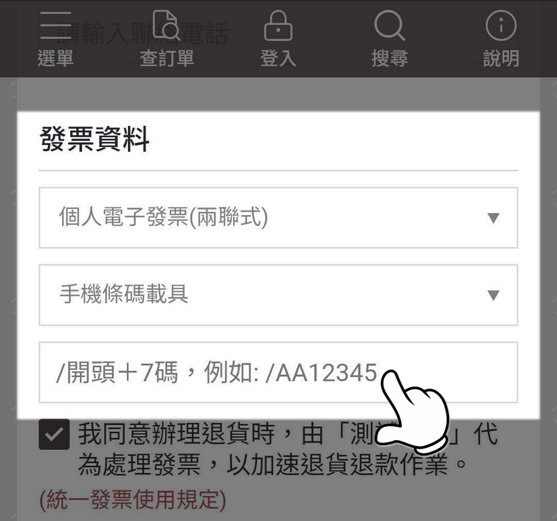 - 「前台結帳頁」「一頁式賣場」發票欄位新增手機載具範例說明。