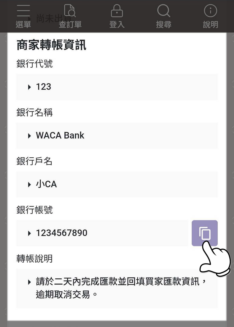 - 「轉帳匯款」「ATM 虛擬帳號」新增複製按鈕。