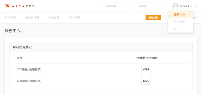 - POS 管理後台 › 帳務中心 › 目前使用狀況,介面優化。